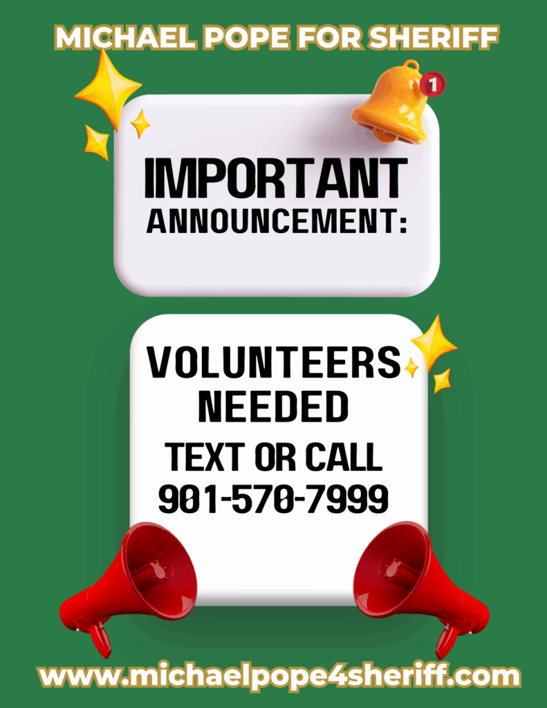 Every dollar helps hire deputies, clean up 201 Poplar, and restore fast response across Shelby County. If you want a safer neighborhood and a sheriff who will end the excuses, this is how we win.